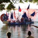 Desfile Fluvial de Canoas Ornamentadas realizada na festa de São Pedro