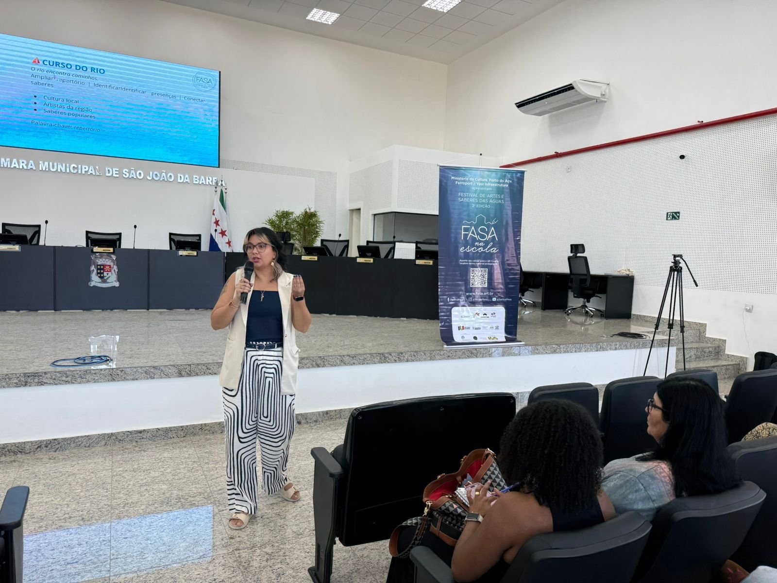 A apresentação do projeto foi conduzida pela arte-educadora Amanda Bastos. “Nosso objetivo é conectar os estudantes sanjoanenses ao seu território a partir da relação com as águas, trabalhar com eles a poética das águas. Esses estudantes vão produzir artes para a exposição durante o Festival, que pretende também, valorizar os artistas e a cultura local”, pontuou.