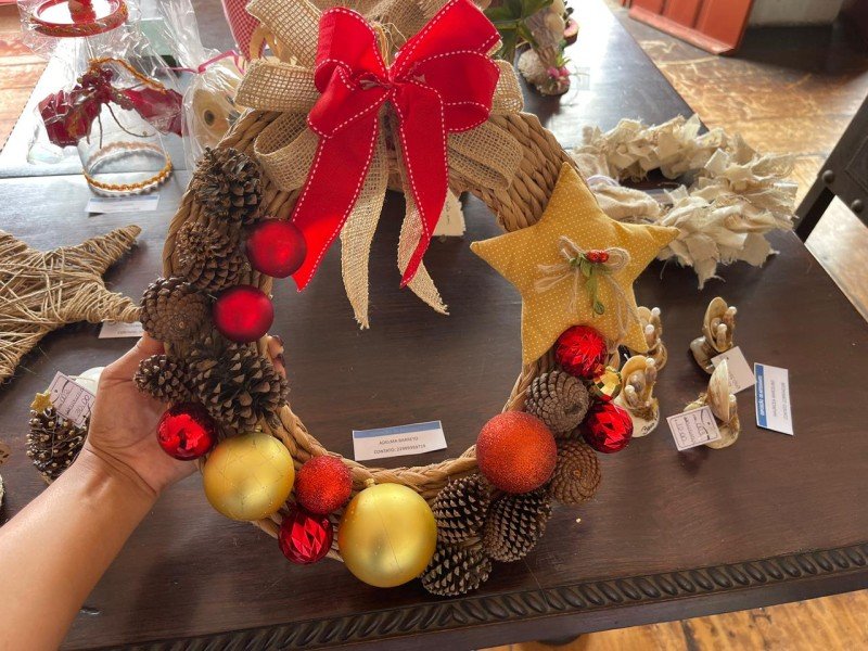 A mostra reúne trabalhos de artistas e artesãos sanjoanenses, como quadros de pintura e desenho, fotografias, esculturas, artesanato em madeira, macramê (bolsas e painéis), arranjos sustentáveis, além de peças temáticas de Natal, como presépios, árvores natalinas, porta-velas, guirlandas e outros adornos decorativos.