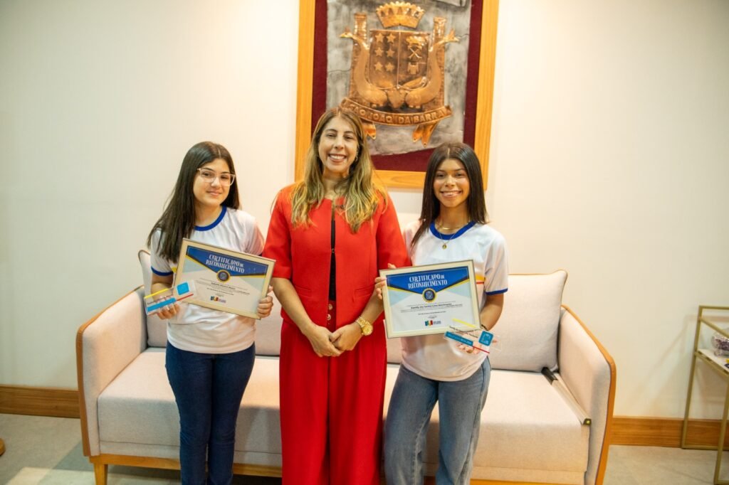Prefeita e vice-prefeita mirins de SJB vivem ao lado de Caputi um dia de chefe do Executivo